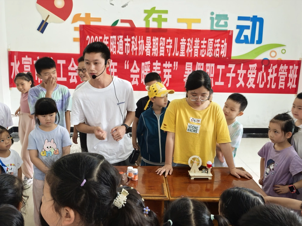 为丰富留守儿童暑期生活,激发青少年科学兴趣,2025年8月11日,昭通市科学技术协会与水富市科学技术协会联合,在水富市总工会暑假托管班共同组织了一场别开生面的科普志愿活动。本次活动吸引了80名托管班学生积极参与,现场气氛热烈,充满了探索与求知的热情。