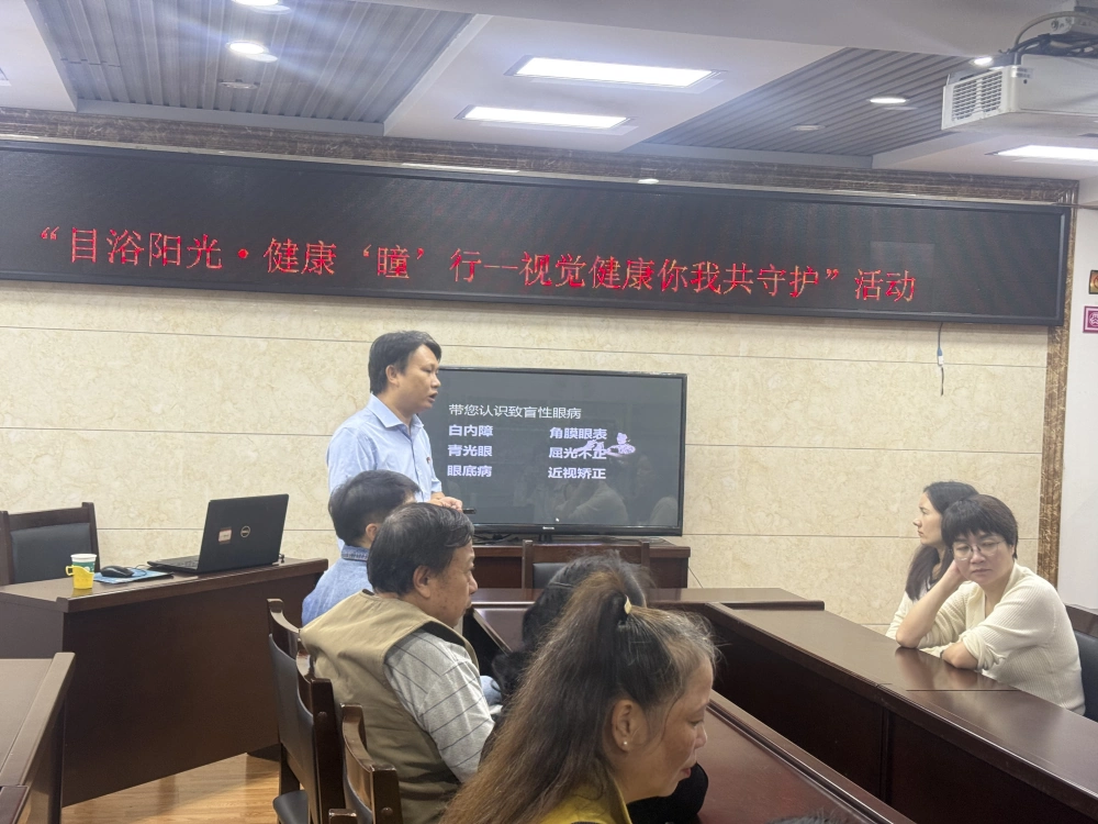 活动现场,首先通过播放生动有趣的科普宣传片,向居民直观展示了常见眼病的预防措施和科学用眼知识。随后,眼科专家围绕近视防控、干眼症预防及老年性眼病早期识别等核心内容开展了专题讲座,深入浅出地讲解了实用护眼要点。