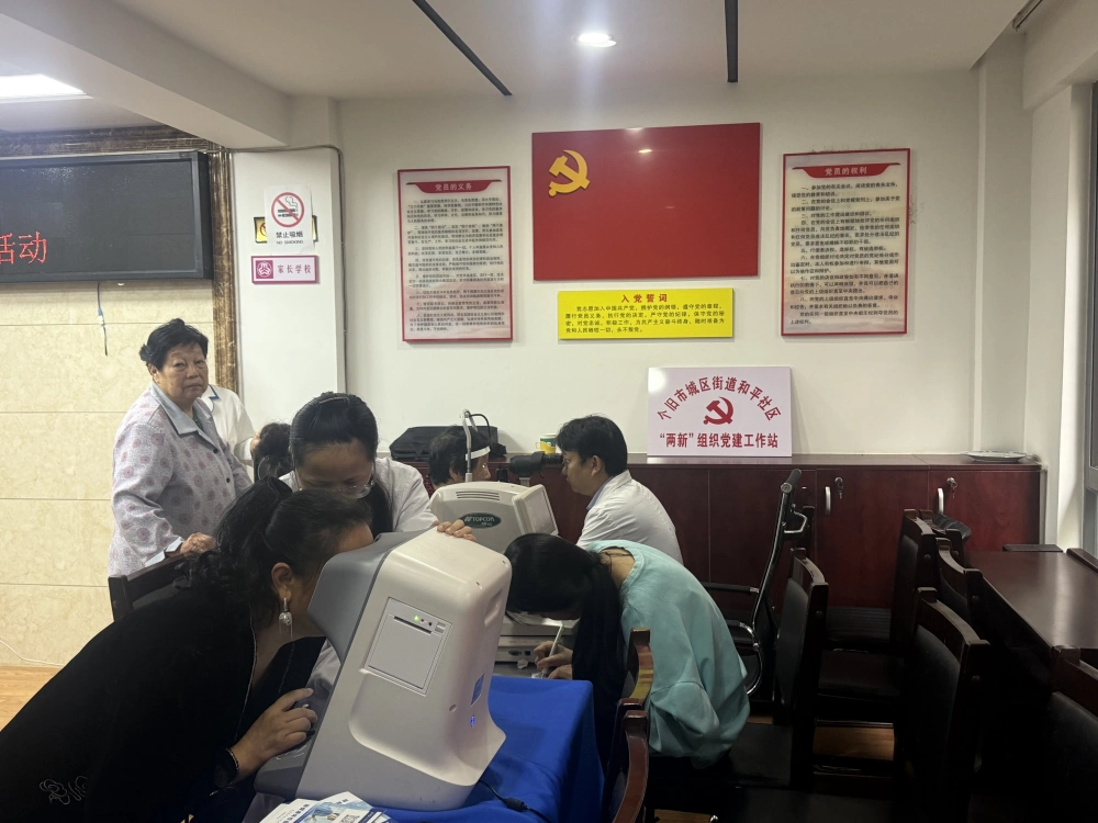 义诊环节气氛热烈,医护人员为社区居民提供了免费的视力检查、眼压测量、干眼雾化熏蒸等服务,并针对检查结果提供一对一的专业咨询和耐心答疑。活动还向居民发放了图文并茂、通俗易懂的《日常护眼指南》手册,便于大家学习掌握实用的眼保健知识。