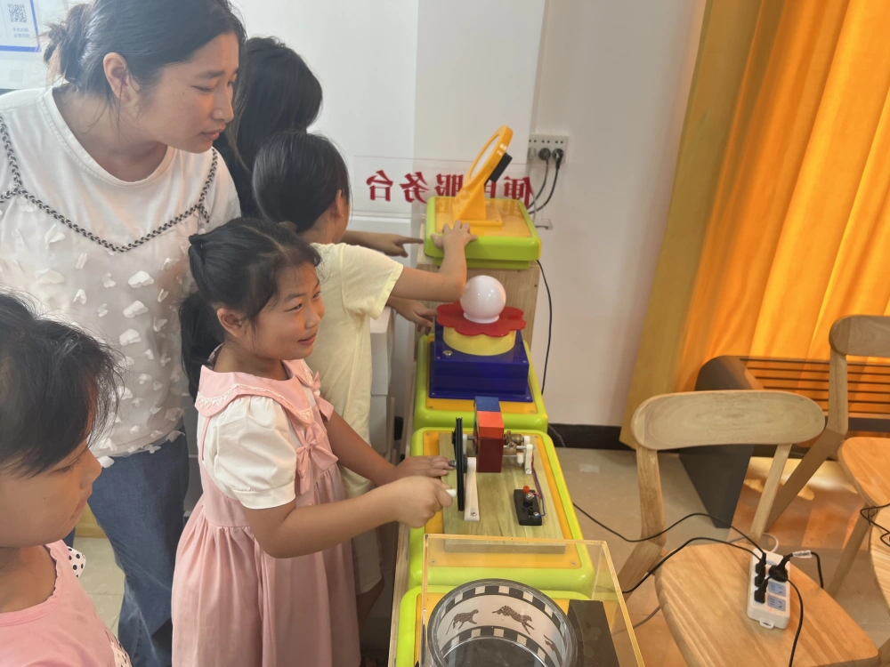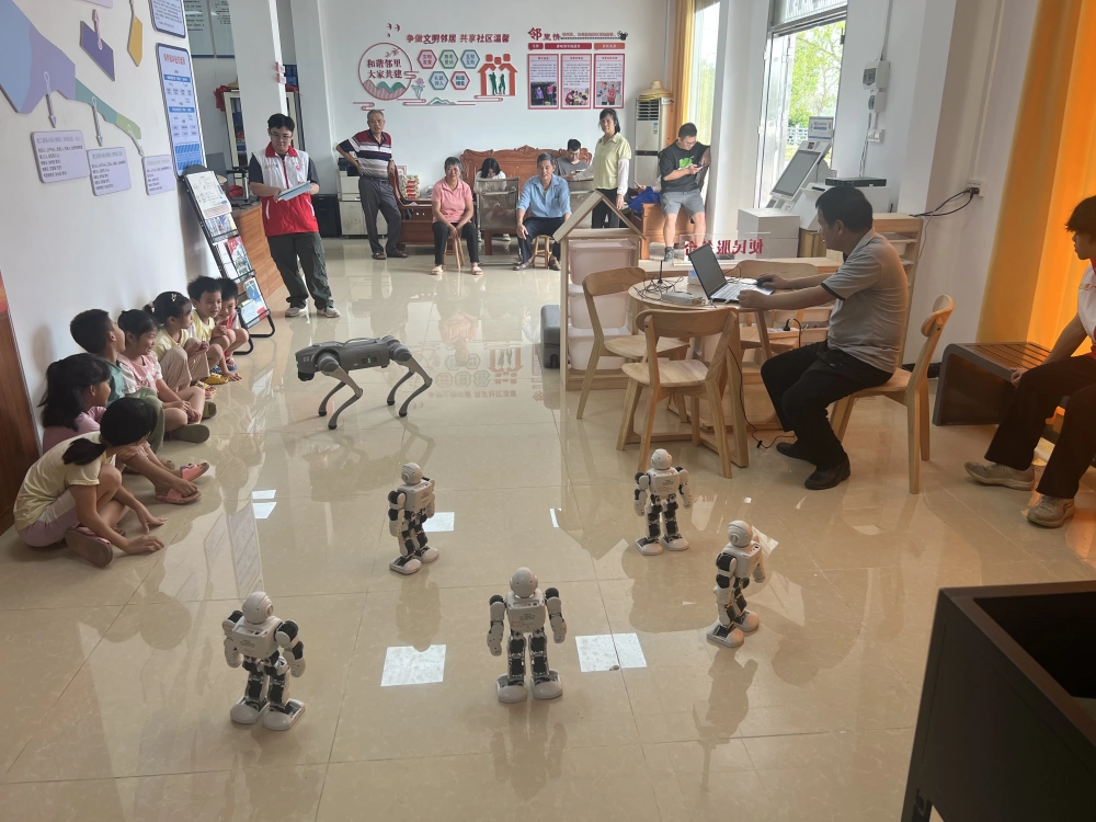 机甲大师、跳舞机器人、机械狗……当这些科普教具出现在建城镇罗旁社区党群服务中心时,乡镇社区的这群农村娃娃一下就兴奋起来。特别是在他们亲自下场体验后,纷纷直呼“太神奇了!”