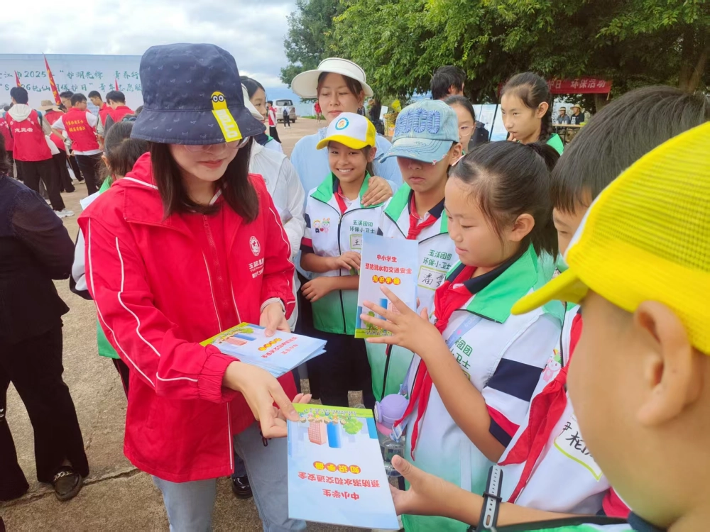 除有奖知识问答,市科协还围绕大家关心的安全与健康问题,设置防溺水、道路交通安全、反邪教等宣传展板,现场发放《科普知识读本》《中小学生预防溺水和交通安全知识手册》等科普宣传资料800余份,活动覆盖300余名参与者,将生态保护与安全科普有机结合,拓展了宣传服务的广度与深度。此外,活动吸引了游客的广泛参与,科普志愿者还向游客普及抚仙湖保护的相关知识,活动受益1000余人次。