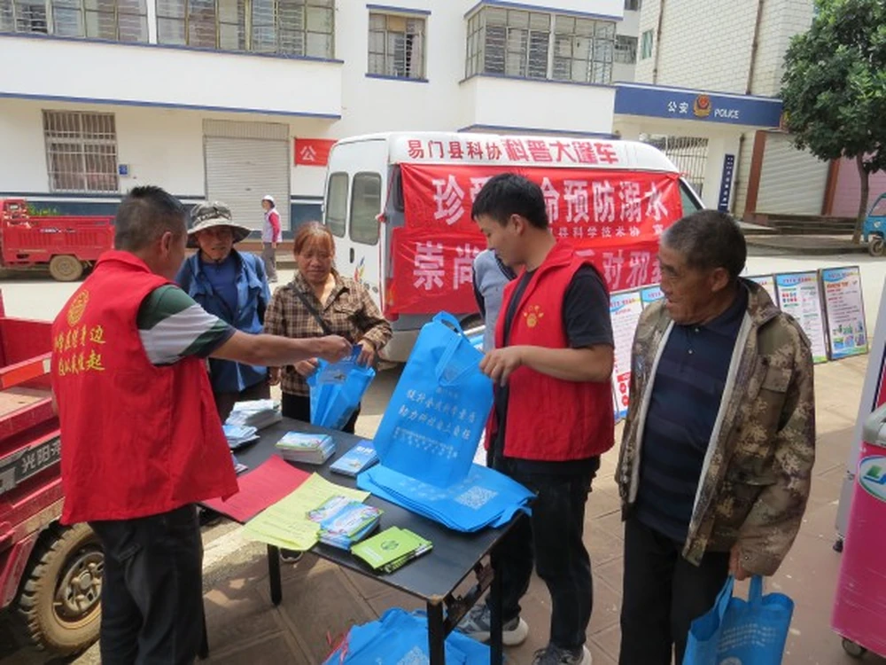 云南省易门县科协联合小街乡科协开展反邪教及防溺水科普宣传活动