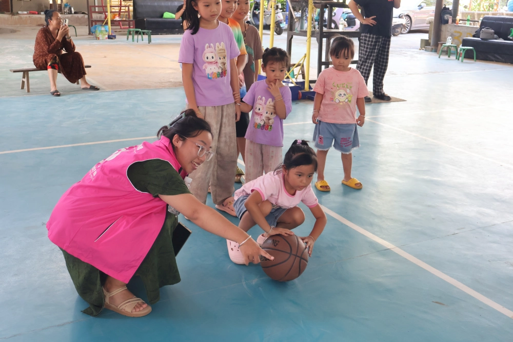 趣味游戏区同样充满科普元素。在“眼疾手快”摊位,孩子们全神贯注盯着空中抛起的沙包,在锻炼手眼协调能力的同时,志愿者同步讲解运动神经反应的科学原理;“趣味保龄球”区,小朋友们摆臂瞄准、投掷击球,志愿者借此科普力与运动的基础知识;“吹球过河”游戏中,孩子们观察乒乓球在纸杯间跳跃,志愿者顺势讲解气流与浮力的简单科学现象。