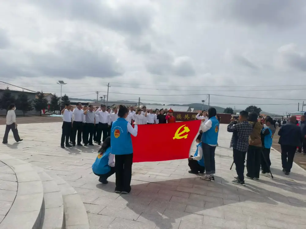 活动最后,全体党员面向党旗,高举右拳,庄严重温入党誓词。铿锵誓言激励广大干部坚定理想信念、践行初心使命。返程途中,各单位还协同开展“蒿草清理”志愿服务,进一步延伸基层服务链条,以实干担当彰显为民本色。