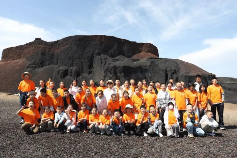活动首日,孩子们踏入乌兰哈达火山地质公园,亲身探索火山地质构造和岩石层成因。在专业讲解下,他们了解到火山活动的奥秘,感受到大自然的神奇力量,野外观察能力和探索精神也在实践中得到锻炼,激发了对地球科学的浓厚兴趣。