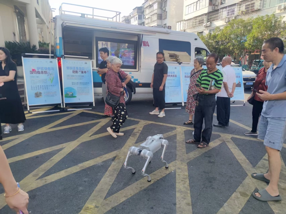 活动现场,各部门通过设立咨询台、摆放科普展板、发放宣传资料等方式,向过往群众宣传生态环保、健康饮食、科技教育等科普知识。医务人员现场为市民提供免费测量血压等义诊服务,志愿者耐心解答群众关心的科技、卫生等问题。最引人注目的是智能机器狗的精彩表演。在志愿者的熟练操控下,机器狗灵活地完成行走、跳跃、转身等高难度动作,还能与观众进行简单互动。孩子们兴奋地围在机器狗周围,不时发出惊叹声和欢笑声,许多成年人也纷纷拿出手机记录这一科技与生活交融的精彩时刻。此次活动共发放科普宣传品400余份,通过创新性的科技展示和互动体验,让市民近距离感受科技魅力,有效推动了科学知识的普及,为提升全民科学素质发挥了积极作用。