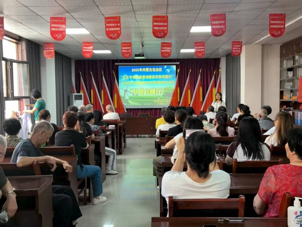 8月11日,2025年“百名专家走进盟市旗县科普传播行”巴彦淖尔夏季培训走进乌拉特前旗在乌拉特前旗林海社区举行。旗科协邀请妇幼保健院总支书记、内科主任医师周翠莲老师,以慢性疾病的饮食控制和运动注意事项为主,提升了居民的健康意识,让大家对预防慢性病有了更科学、全面的认识。