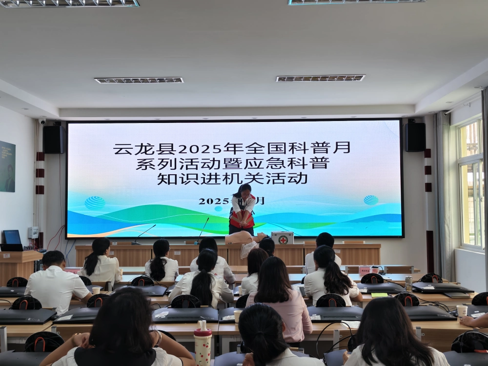 为全面提升机关干部的基本应急救护技能,强化自我保护和自救互救能力,共同构建安全、健康的社会环境。9月4日,云龙县科协携手县红十字会走进云龙县总工会培训室,开展了一场以“学应急知识·强机关保障”为主题的应急科普进机关行动,将实用科普服务送进机关单位。来自群团联盟办的36名干部职工积极参与,沉浸式学习急救技能,为生命安全“加码”。
