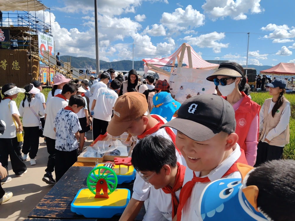 别开生面的科普活动有序开展,通海二中、六一小学学生在教师引导下,零距离观摩科普展教具,探索体验科普仪器带来的新奇,兴奋地围拢在生物科普展台前,或听老师讲解昆虫,或踊跃举手竞答生态科学问题,其乐融融参与科普体验活动中。展演舞台上,乡村文艺队或翩然起舞、或小品说唱、或生态知识科普问答,每一个节目都围绕“弘扬抗战精神、杞麓湖生态保护”展现主题思想,现场气氛活跃,以喜闻乐见方式传播生态文明的科学理念,取得了很好的宣传效果。