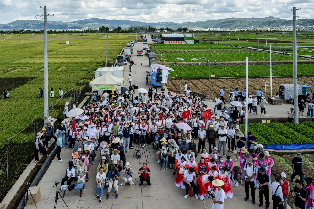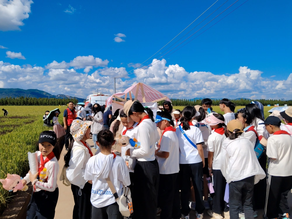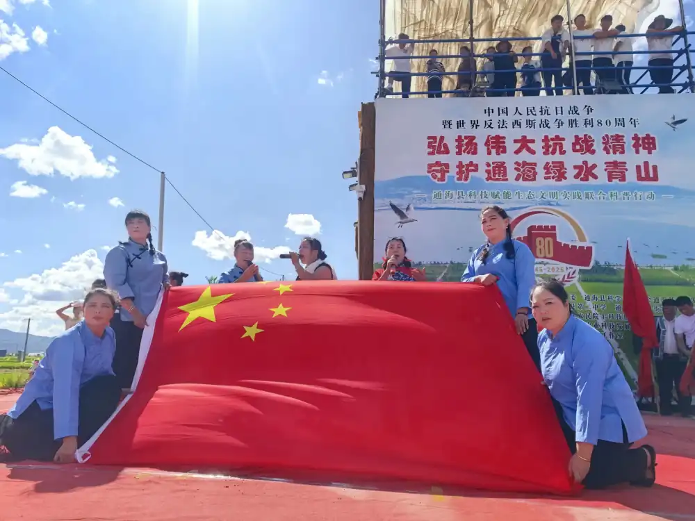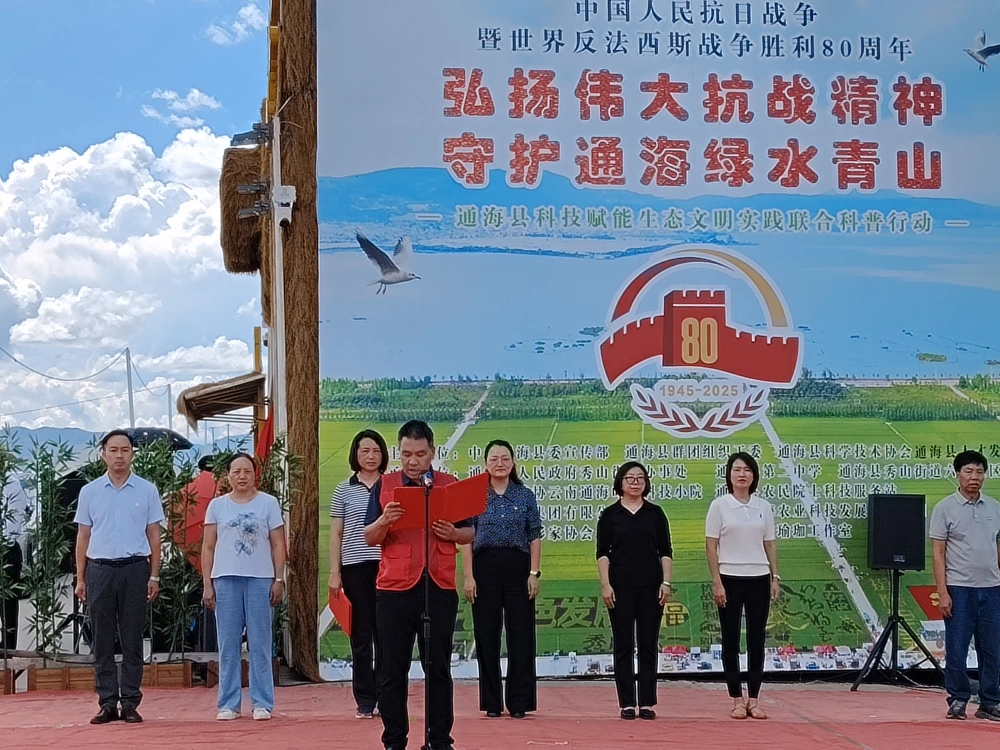 9月3日,是中国人民抗日战争暨世界反法西斯战争胜利 80 周年纪念日,恰逢首个全国科普月启幕,通海县科技赋能生态文明实践科普联合行动,在秀山街道六一村牛角坝塘稻田间举行,通海县科协主席作了“传承抗战精神、笃行生态使命”科普月启幕讲话,来自秀山街道临湖村社的干部群众、周边群众、中小学校师生共上千人参与活动。