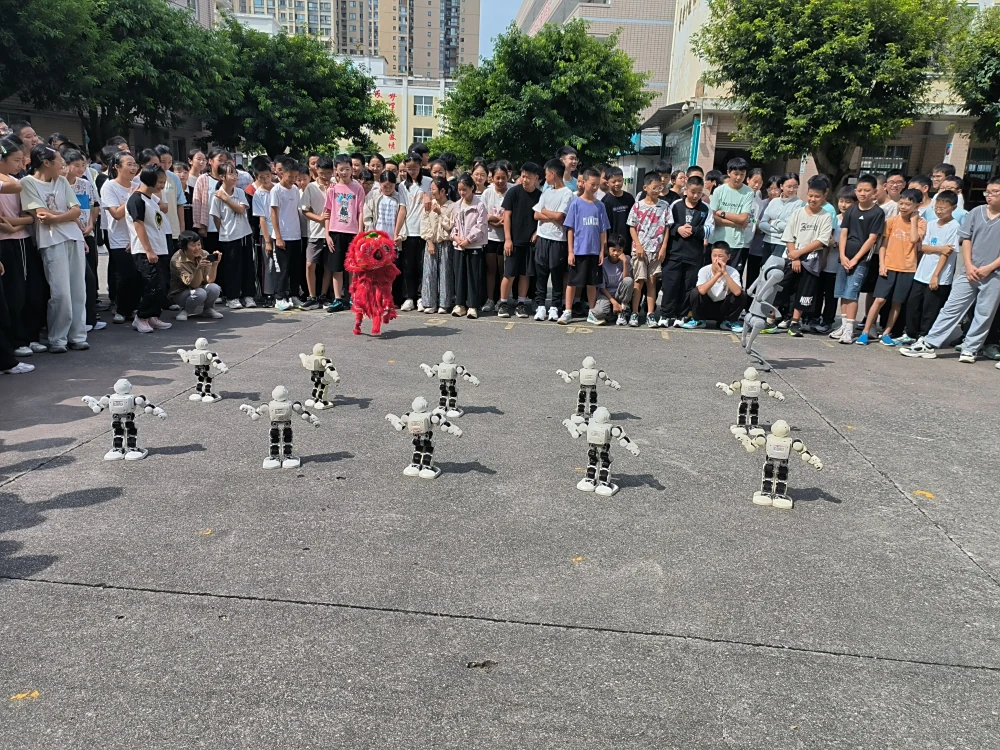 机器人与机器狗表演一直是科普大篷车活动中最吸引学生的环节之一。通过编程让跳舞机器整齐划一的跳起精彩的舞蹈,机器狗则表演倒立、站立、握手等动作,让师生们大开眼界,惊呼我们国家科技的魅力太震撼了。