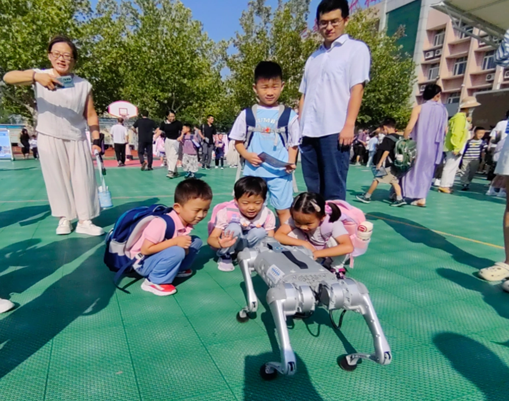 在滨城区第一小学校园门口,灵动的“科技狗”摇着机械尾巴与三年的小鼓手一起迎接新生,击鼓迎新”,这一浸润着传统智慧的仪式,在校园里焕发出别样活力,更被注入了“以科技立志”的崭新内核。