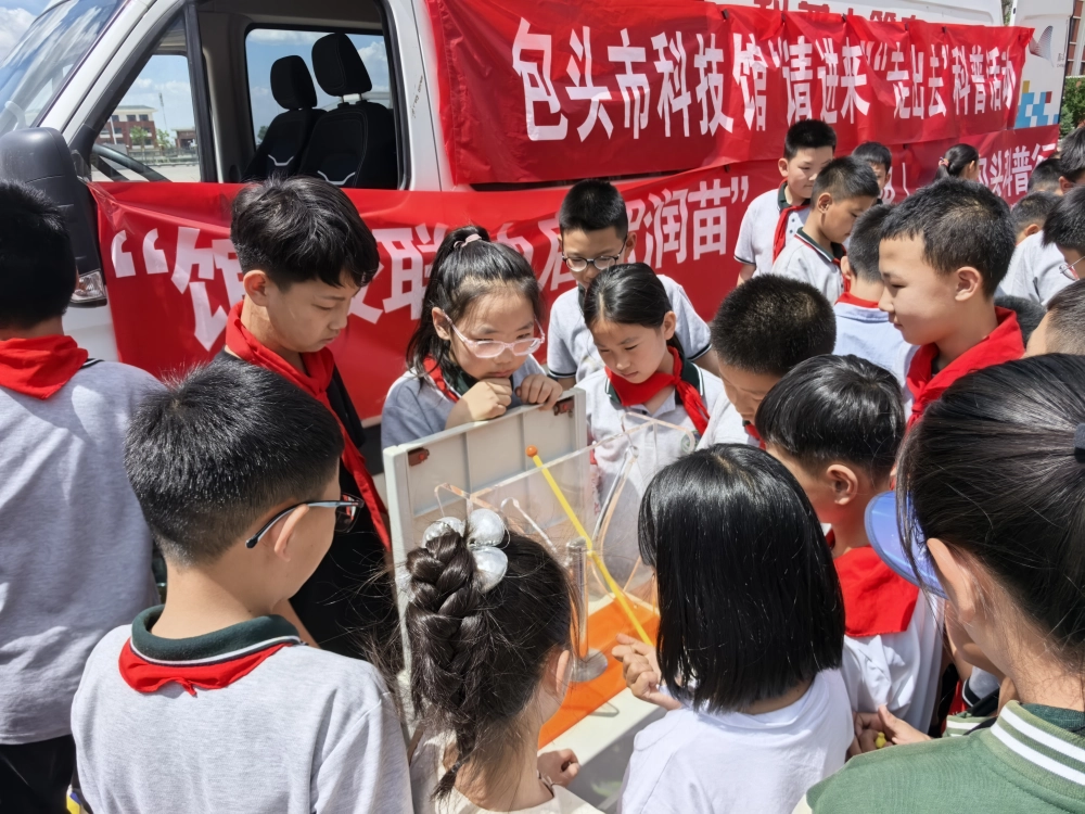 一堂妙趣横生的科普体验课程应当如何展开?6月19日,“馆校联动•启智润苗(第三期)——包头科普行”活动走进石拐区,为苏蒙实验学校和喜桂图小学的同学们带来了一堂不一样的科学课。市科技馆科普大篷车及相关科技馆辅导员、科普志愿者联合参与了本次活动。
