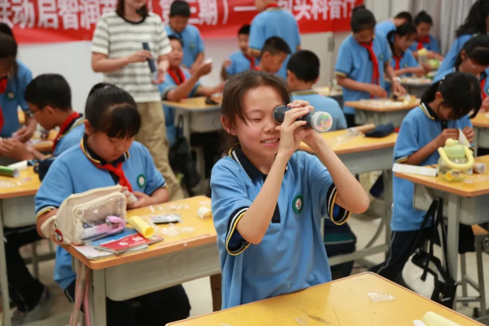 教室里,《聪明的“牧草”》《建筑大挑战》《梦幻万花筒》《火箭梦之旅》等丰富多彩的体验课程正在上演,同学们在老师的带领下自己动手完成科学小实验,结合恰到好处的知识框架、方法论讲解,激发大家对于科学实验探究的热忱。