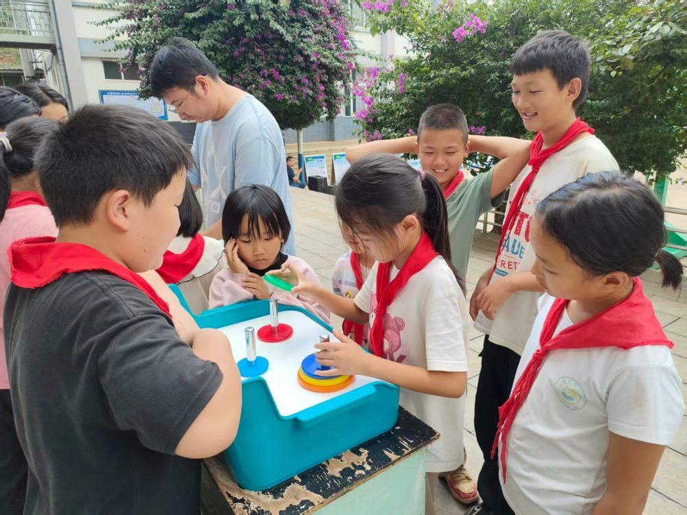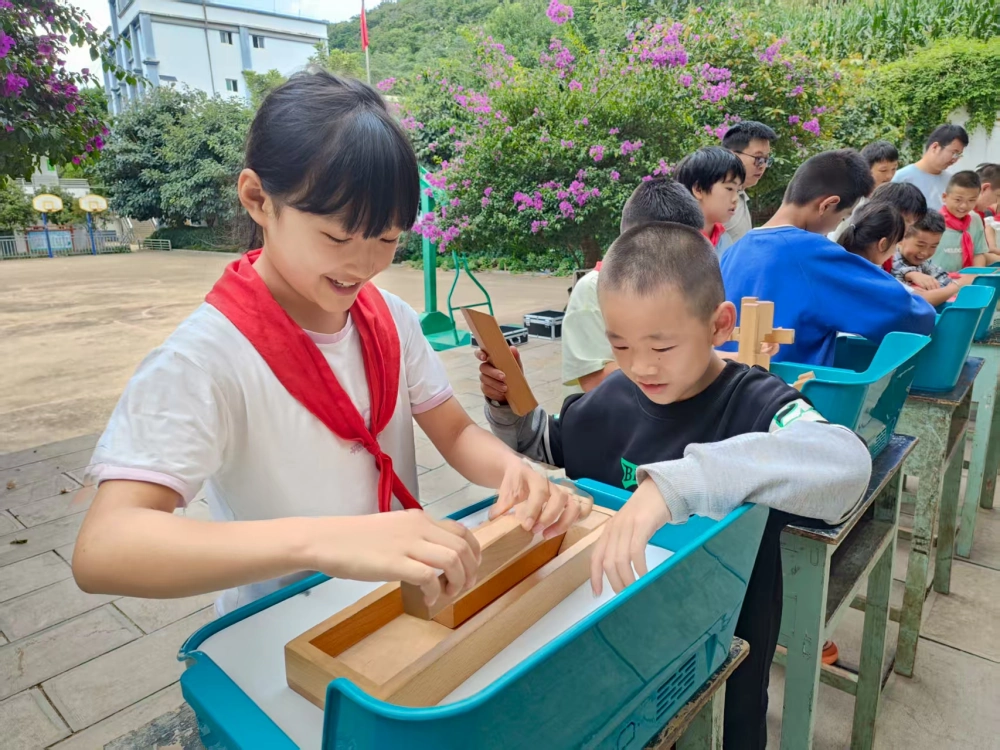 科普大篷车还带来了20套“数学之趣”思维训练套装——能拼的榫卯、能算的幻方、能解的数字谜题......孩子们一边观察一边思考,有的还凑在一起小声讨论,随着小手动起来、脑子转起来,不知不觉就找到了科学思维的小窍门。