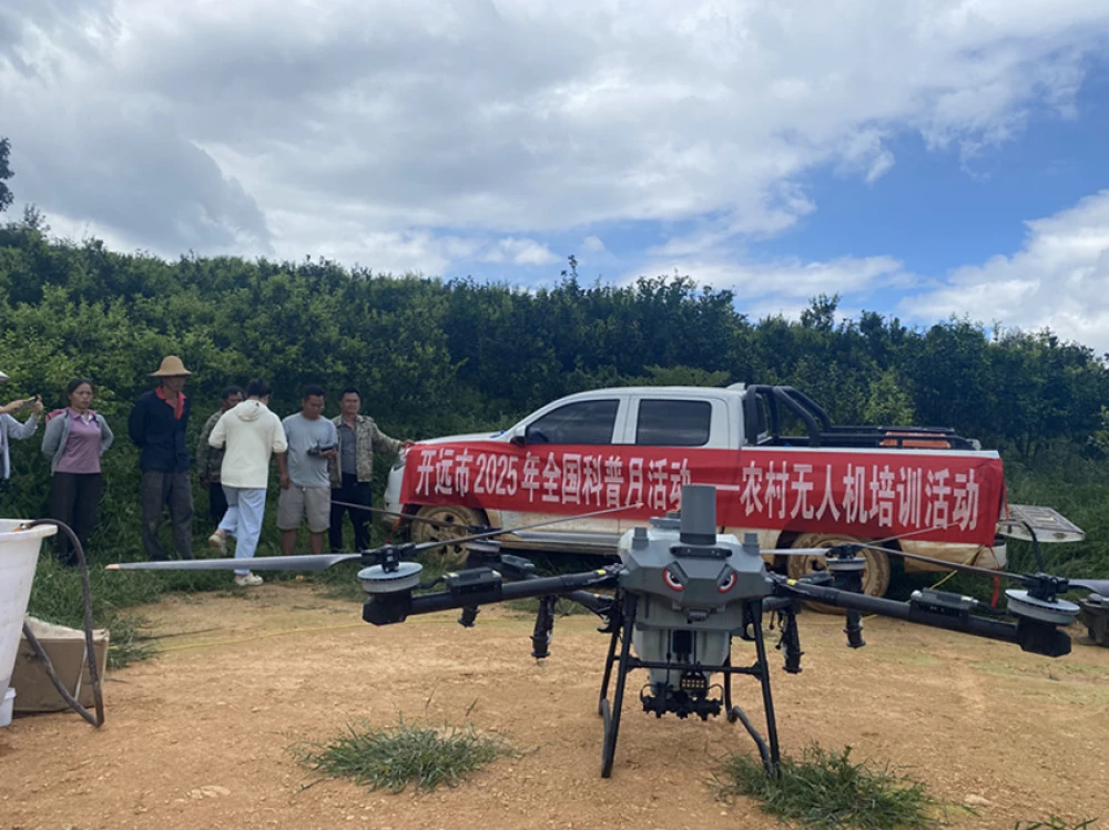 为推动《中华人民共和国科学技术普及法》深入实施,提高公民科学素质,在首个全国科普月期间,开远市科普大篷车驶入中和营镇冲子村委会举办农用无人机操作技能培训,中和营镇种植大户、农技骨干等共30余人参加培训。