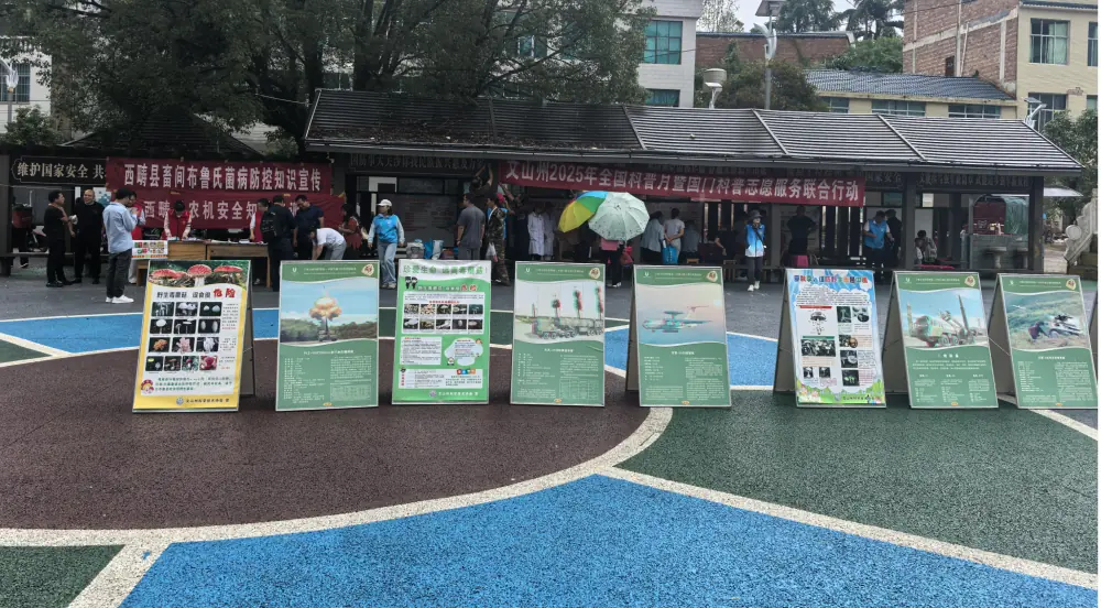 西畴县农业农村科技局和柏林乡政府工作人员借此次科普月联合活动开展农机培训及布鲁氏病菌防控宣传,现场还免费发放油菜花种子,活动效果显著。