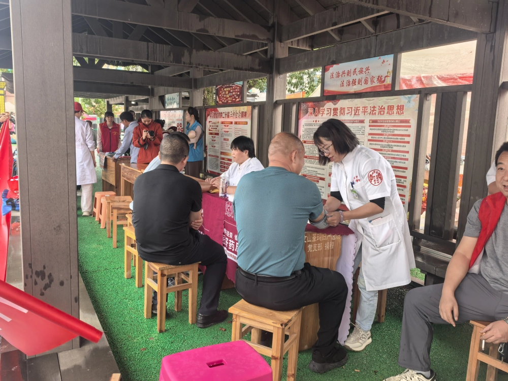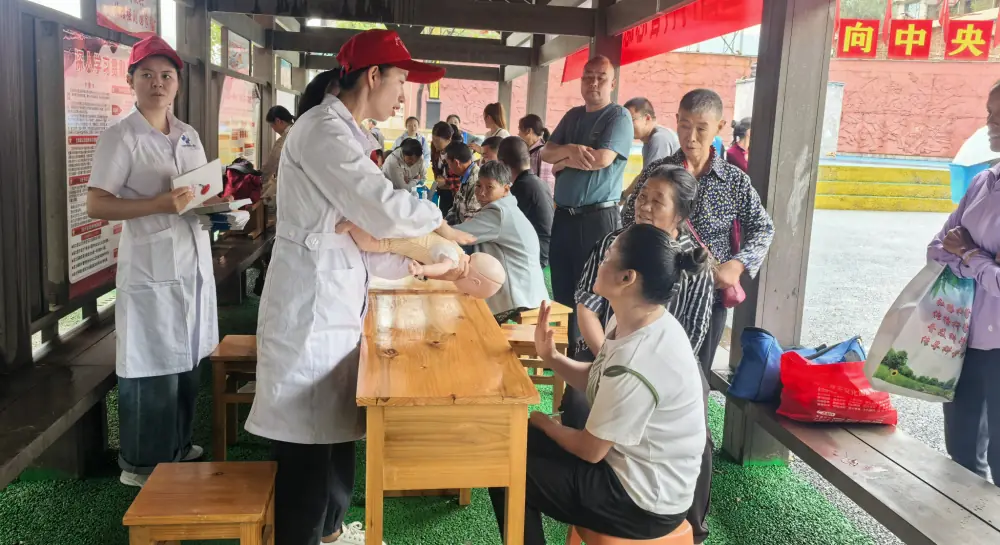 州护理学和圣爱中医馆的医疗团队开展义医义诊,诊脉、推拿等深受群众喜爱,雨天也挡不住群众向往的心情。医护人员现场教学海姆立克法和其他急救知识,细心教群众不同年龄段的使用方法,用科学知识守护百姓安康,有效地提高了群众的健康意识。