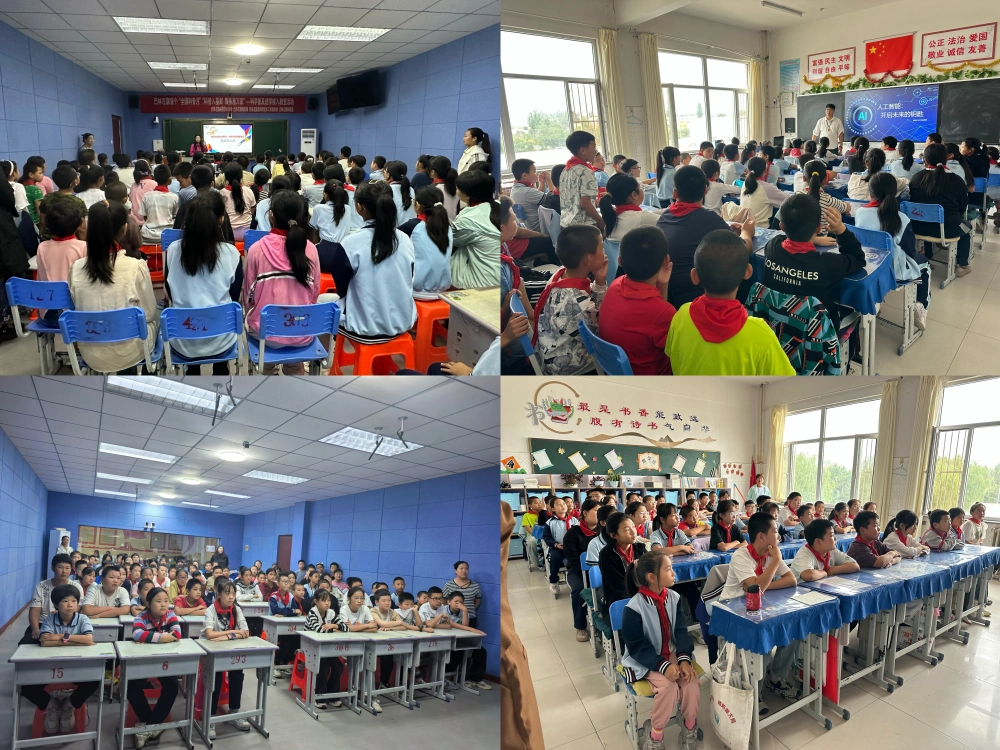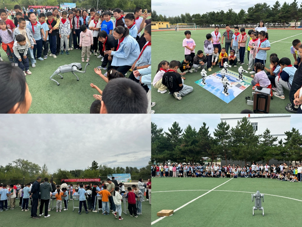 活动现场,科技志愿者巴林左旗小飞手无人飞行器科技俱乐部教员徐安爽老师和机械公民赵宏伟老师分别带来无人机和人工智能讲座。徐老师深入讲解无人机知识,赵老师聚焦人工智能领域,结合生动案例,激发了孩子们的好奇心与探索欲,互动环节中,孩子们积极提问,现场气氛热烈。此外学校操场上15套车载科普设备吸引了学生们的目光,孩子们踊跃动手体验,探索科学奥秘。无人机、机器人和机器狗的精彩表演更是将活动推向高潮。无人机在空中灵活穿梭,机器人欢快舞动,机器狗敏捷互动,引得孩子们阵阵惊叹与欢呼。