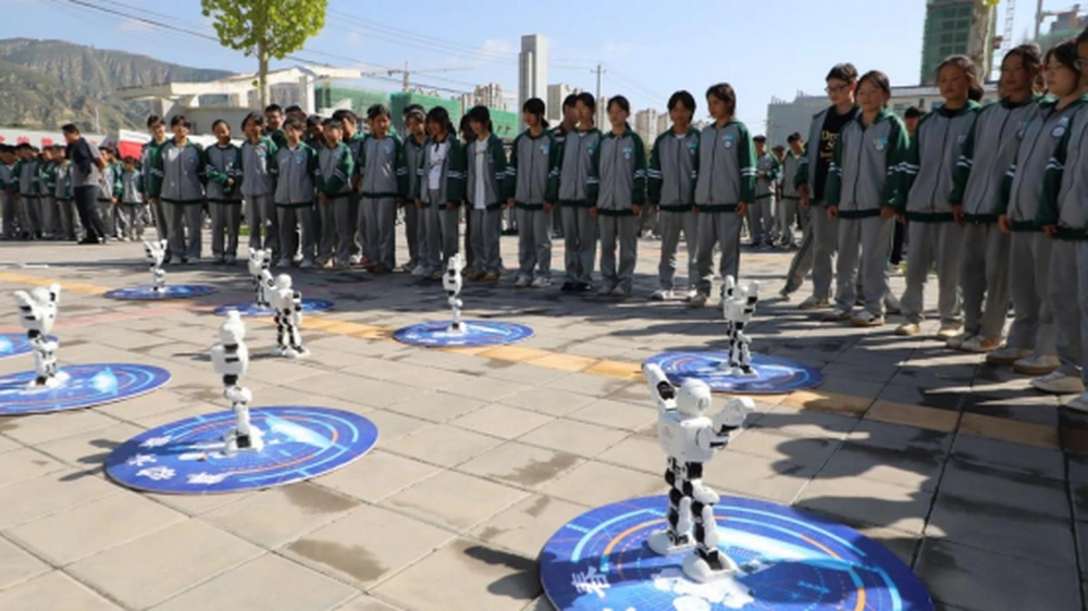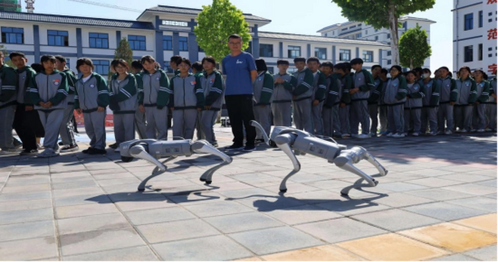 跳舞机器人闪亮登场。伴随着欢快动感的音乐节奏,机器人灵活地扭动身躯,摆动双臂,做出各种憨态可掬又极具节奏感的舞蹈动作,让师生们忍俊不禁,现场笑声不断,不少学生还跟着音乐的节拍,与机器人一同舞动,互动氛围极为热烈。