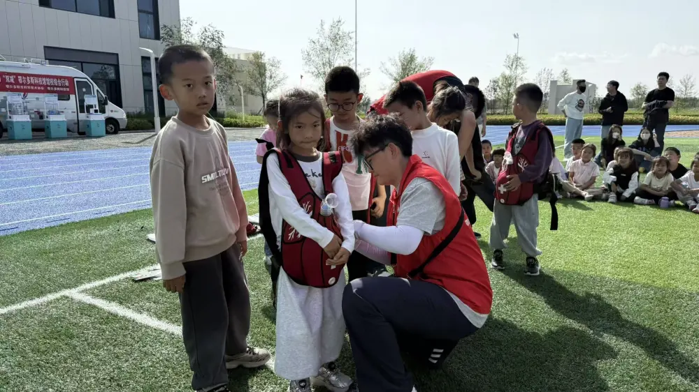 应急救护知识讲解也是本次活动的重要环节。科技辅导员结合真实案例,为同学们带来一堂实用的应急救护课,重点演示海姆立克急救法的操作步骤,并通过模拟训练帮助大家掌握基本技能。课程结束后,还向每位同学分发了急救宣传册,鼓励课后巩固学习。同学们认真聆听、积极互动,有效提升了自我保护及互助救援的意识和能力。