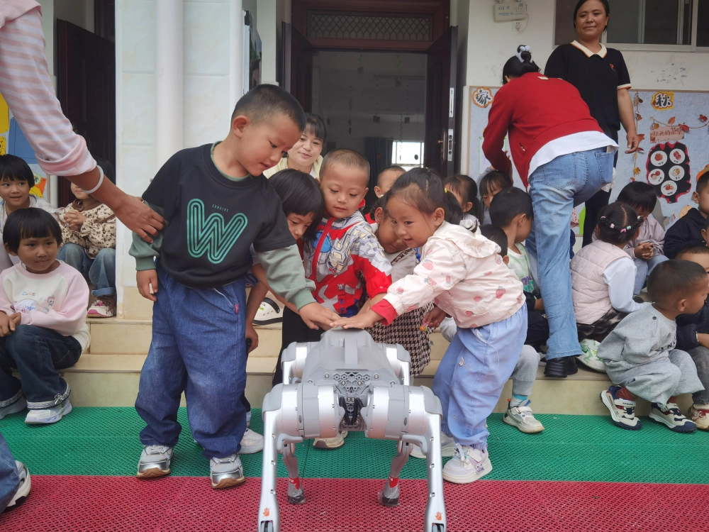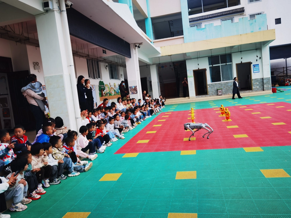 结合2025年全国科普月系列活动的开展,9月12日上午,云龙县科协科协科普大蓬大篷车驶入白石镇中心幼儿园,为全体师生送上一场科普盛宴。活动现场,科普志愿者人员操控机器狗演示基本功能: 前进、后退、转弯、旋转、坐下、握手(根据机器狗功能)。机器狗单独展示模仿动物的动作,还能和大家互动,让小朋友们直观感受到四足机器人的灵活,以及它能做很多事的潜力。机器人则随着音乐的想起,翩翩起舞,整齐的动作引来小朋友的一片欢呼,在安全、快乐的氛围中,让幼儿享受与科技互动带来的新奇体验。