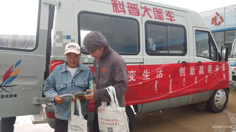 9月12日下午,正镶白旗科协科技馆出动科普大篷车走进星耀镇南沟村,为当地农民举办了一场农业生产实用技术培训活动。此次活动是按照“2025年内蒙古自治区百名专家走进盟市旗县科普传播行”秋季活动即“全国科普月”的统一部署同步进行的。