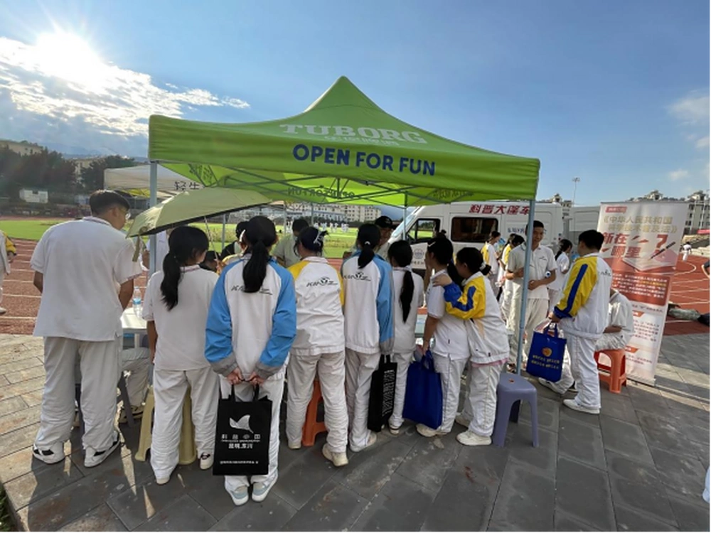 仪式结束后,各单位依托科普大篷车,设置多个科普宣传与体验区,通过展具演示、实物操作、发放读物等形式,为学生带来沉浸式科学体验。内容涵盖应急避险、健康常识、人工智能等多个领域,极大激发了学生的参与热情和探索兴趣。