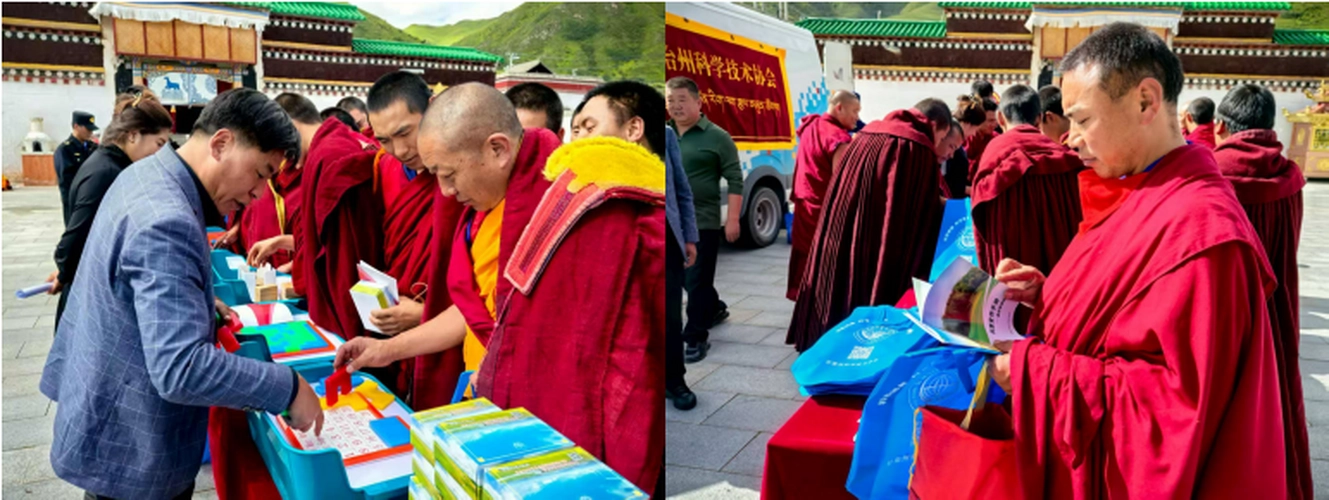 活动当日,科普大篷车满载着各类科普展品,吸引了众多僧俗群众的目光,现场还发放藏汉双语各类科普资料和宣传品,内容涵盖铸牢中华民族共同体意识、法律法规、健康生活、生态环保、防灾减灾等,科普志愿者以通俗易懂的语言传播科学知识,让大家体验到科技对生活带来的巨大改变。