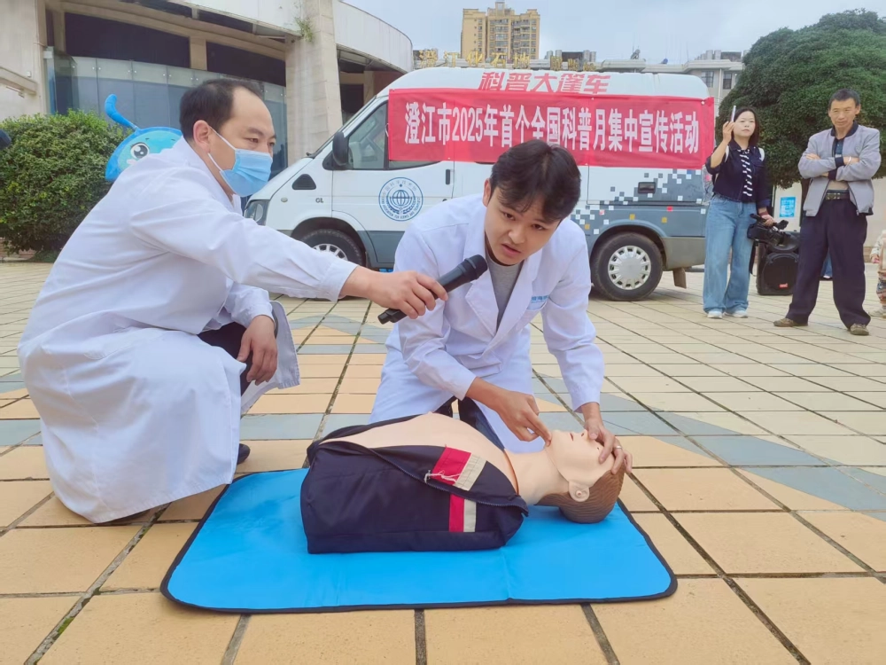 紧接着,澄海医院的医护人员开展了心肺复苏、海姆立克急救法演示及科普知识讲解。医护人员一边进行规范操作演示,一边详细讲解动作要领和注意事项,“心肺复苏时,按压频率要保持在每分钟100 - 120次,按压深度为5 - 6厘米” “海姆立克急救法针对不同人群有不同的操作手法,成人、肥胖人群、孕妇、儿童的急救要点也有所区别”,通俗易懂的讲解让群众快速掌握了这些能在紧急时刻救命的实用技能,不少群众还拿起手机记录,学习热情高涨。