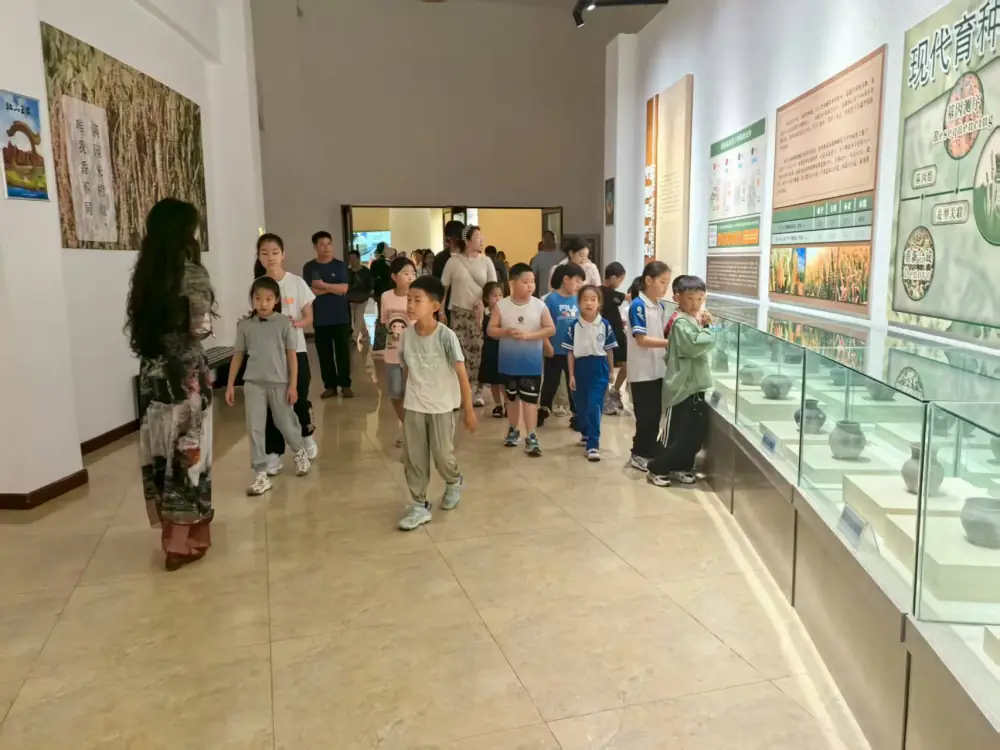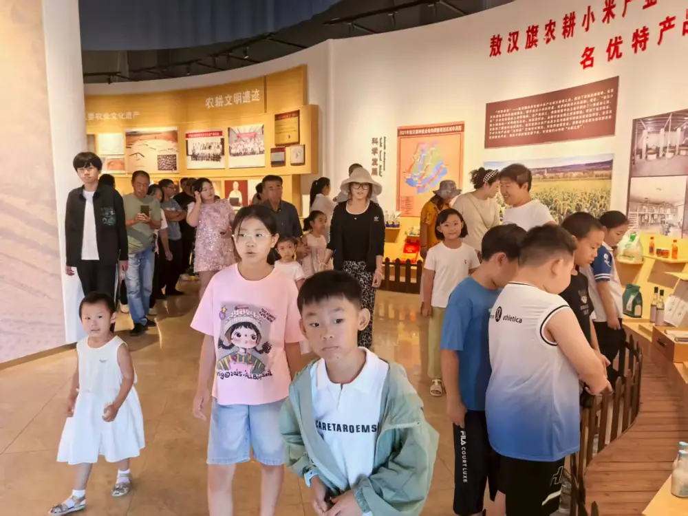 在敖汉旗小米博物馆讲解员的带领下,青少年和家长们一起探寻小米的故事。讲解员通过对小米的历史、种植技术、营养价值和产业发展几方面进行了细致的讲解,孩子们了解了小米的前世今生及其所承载的厚重文化。