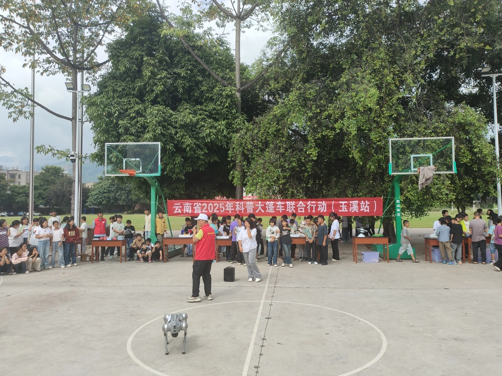 9月11日云南省玉溪市科协科普大篷车参加2025年科普大篷车联合行动(玉溪站)来到了玉溪华宁县盘溪中学,本次活动展出涵盖声光电学等多领域的丰富科普教具,还安排了机器狗表演,科普志愿者进行耐心细致的讲解。此次活动,有力帮助学生了解科技,提升对科学的兴趣与热爱,提高学生科学素质,激发其对科学的热情,有效帮助学生加深对科技的认知,激发了学生对科学的兴趣与热爱,提升了学生的科学素质。本次受惠师生共计1486名,发放各类书籍1400余本。