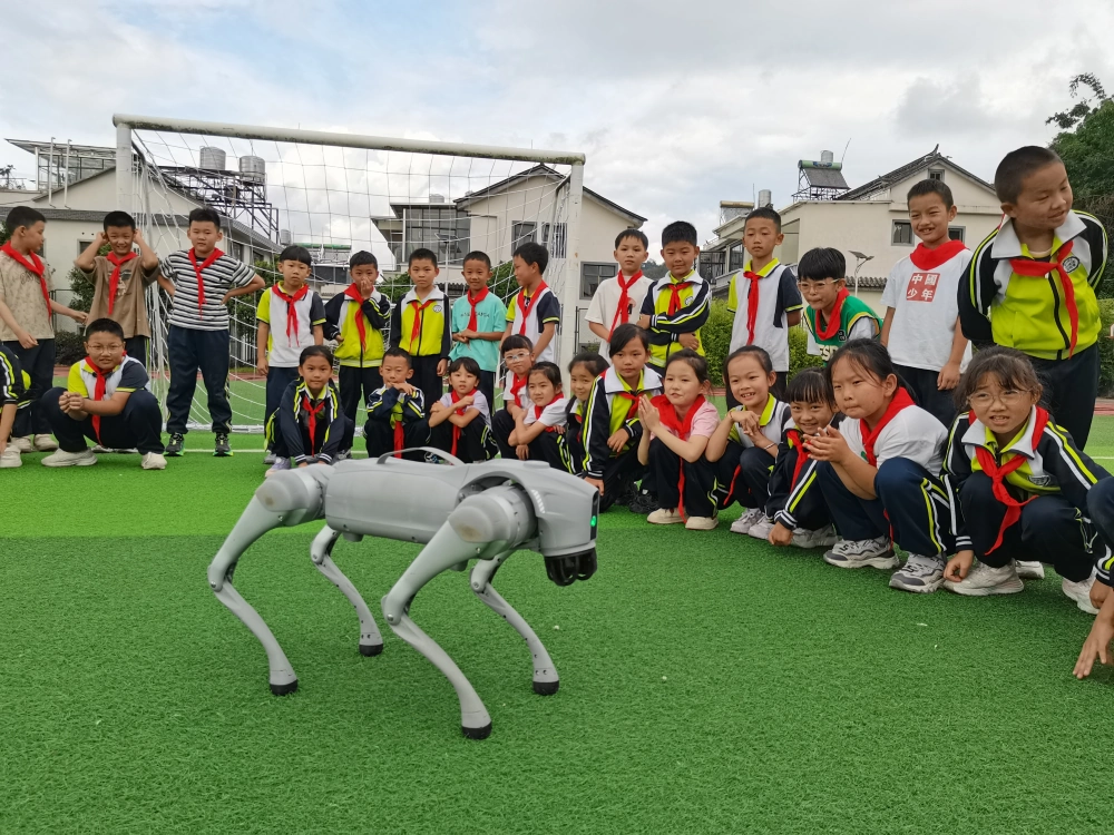 由龙陵县科学技术协会推出的科普展区同样人气高涨,现场人头攒动、热闹非凡,展区精心划分三大板块,为师生们打造了一场沉浸式科普体验。在知识宣传展区,40块色彩鲜明的展板整齐排列,成为传播科学思想的重要阵地。其中20块展板聚焦“科学家精神”主题,生动讲述了20位中外科学家的生平事迹;另外20块展板则围绕“反邪教”主题,通过图文结合的形式揭露邪教本质,用真实案例警示邪教危害,引导师生认清邪教套路,筑牢思想防线。益智科普互动区更是成为孩子们的“欢乐天地”,15组数学思维训练套装整齐摆放,七巧板、数字拼块、几何体模型、鲁班锁等道具一应俱全,现场满是孩子们探索的乐趣与成功的喜悦,师生们在动手实践中轻松锻炼了逻辑思维能力。智能科技展演区则充满“未来感”,机器狗灵活的步伐、仿生机器人精准的动作、无人机在空中的平稳盘旋,瞬间吸引了全场目光。科普志愿者现场讲解平衡原理、传感器技术与机械控制等科技产品背后的原理知识,让师生们在互动中感受科技的魅力,让师生们近距离感受科技的神奇与力量。