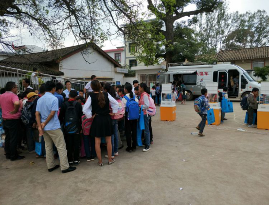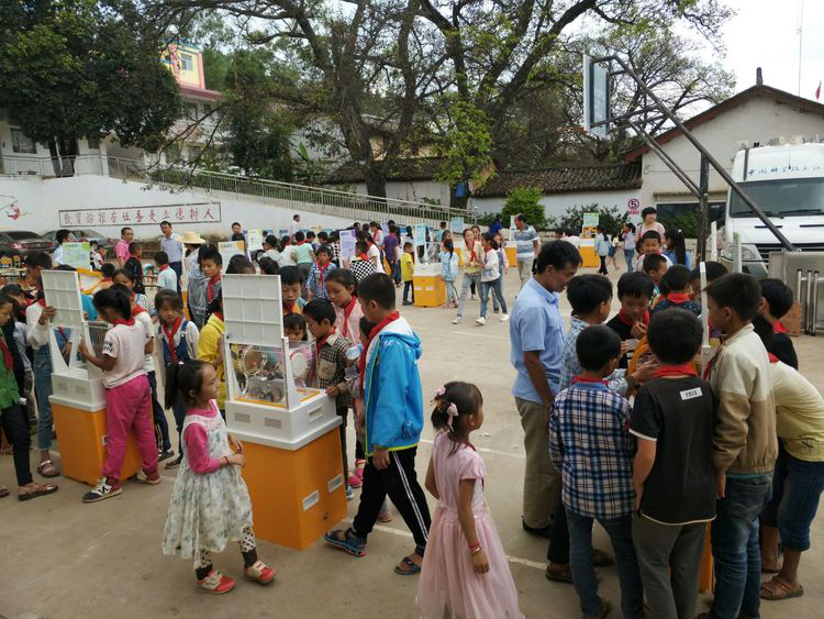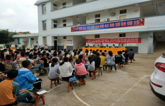 云南省牟定县科普大篷车走进校园、乐了彝家青少年