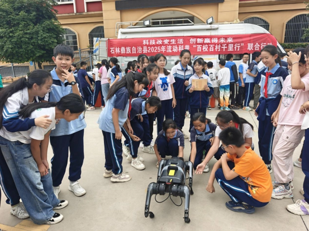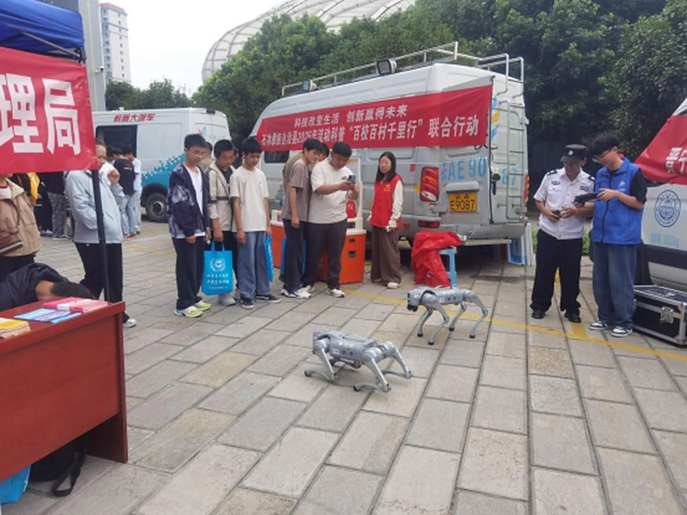 科普大篷车先后到宜良科技馆、宜良新华小学展出,以体验、互动等丰富多样的科普形式传递知识,调动广大群众及学生参与度,动手操作体验机器狗,实地感受“声、光、电、力学”等科学原理的魅力,形成对电磁、光学、力学等多门学科知识的初步认识,活动现场气氛热烈,不时传来学生们的惊讶声、欢呼声。