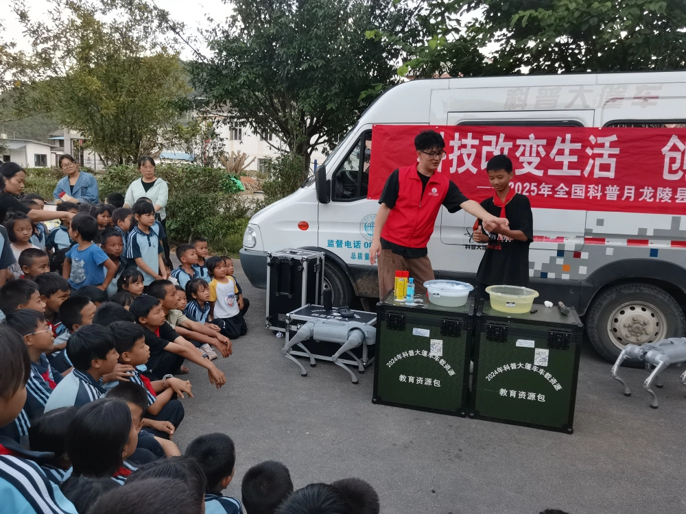 在全国科普月活动火热开展之际,龙陵县科学技术协会科普大篷车于9月9日驶入边境乡镇木城彝族傈僳族乡老满坡完全小学,以“科技赋能边疆,创新引领未来”为主题,开展了一场沉浸式科普体验活动,为300余名师生送上“科技大餐”,标志着龙陵县科普边疆行专项行动向纵深推进。
