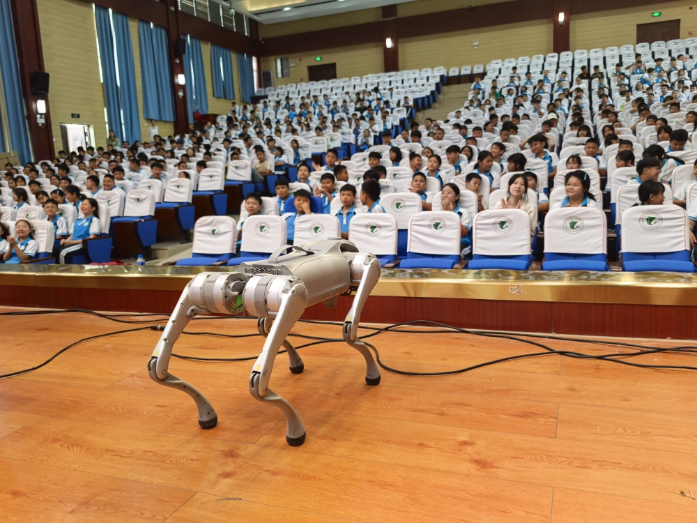 作为科普月系列活动的关键一站,本次活动精准聚焦职业中学师生应急能力提升需求,以新学期开学为契机,将科普大篷车开进景洪市职业中学校园。这辆满载科技资源的 “移动科普站” 一亮相,便凭借丰富的互动内容吸引了师生们的目光,而其中最引人瞩目的当属 “机械狗登台表演” 环节。伴随着现场欢呼声,机械狗在指令操控下灵活展示行走、跳跃、转圈、匍匐等动作,更生动模拟了灾害现场 “应急巡检” 场景 —— 它穿梭在模拟的 “危险区域”,精准避开障碍物,仿佛在执行救援前的环境探查任务。景洪市科协志愿者借此机会,围绕机械狗的运动控制原理、传感器技术应用,以及在极端天气灾害后物资运输、危险环境探测等应急救援场景的适配性展开讲解,用直观的演示和通俗的语言,让师生们深刻感受到科技为应急救援带来的新可能,也让 “科技护航安全” 的理念在互动中悄然扎根。