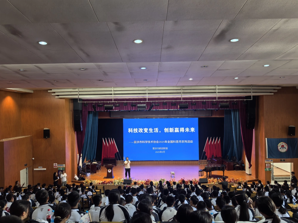 作为科普月系列活动的重要一环,本次活动首站聚焦校园安全,以新学期开学季为契机走进景洪市第四中学,为全校师生送上一堂兼具知识性与趣味性的 “开学第一课”。活动现场,景洪市科协精心调配的 “科普大篷车” 率先登场,这辆流动的 “科学殿堂” 瞬间成为校园焦点 —— 车旁设置的互动体验区人头攒动,而最受师生追捧的当属 “机械狗登台表演” 环节。随着指令下达,灵活的机械狗精准完成行走、跳跃、转圈、匍匐等动作,还生动模拟了 “应急巡检” 场景,用科技感十足的动态演示点燃全场热情。科协志愿者趁热打铁,围绕机械狗的运动原理、传感器应用及应急救援领域的适配场景展开讲解,从灾害现场物资运输到危险区域环境探测,深入浅出地展现科技赋能应急救援的新可能,让学生在惊叹中理解 “科技是安全防护重要支撑” 的深刻内涵。