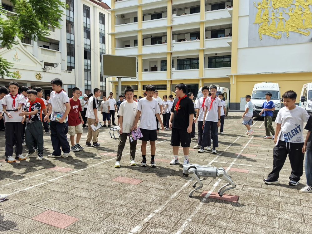 机械狗展示环节则成为现场的 “人气焦点”。市科协工作人员操控机械狗登场,随着指令下达,机械狗灵活完成行走、转圈、摆尾等基础动作,随后更精彩呈现 “跳舞” 表演 —— 跟着节奏扭动身体、变换姿态,流畅又可爱的模样引发同学们阵阵欢呼与掌声。不少同学拿出手机记录精彩瞬间,还有同学主动向工作人员提问 “机械狗是如何接收指令的”“它能学会更多动作吗”,工作人员耐心解答,进一步激发了大家对人工智能技术的探索兴趣。