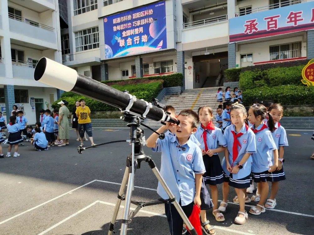 在新华小学,各年级学生分批参加了科普宣传活动,学生们根据自己的兴趣,或观看机器人、机械狗表演,或通过天文望远镜探索太空,并在指导员 的指导下了解了天文望远镜的各个组成部分以及各部分的功能。活动现场秩序井然,掌声、欢呼声不断。