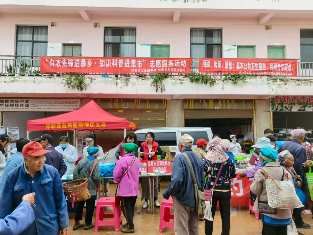 云南省弥勒市科协开展“白衣先锋进彝乡·知识科普进集市”科普志愿联合活动