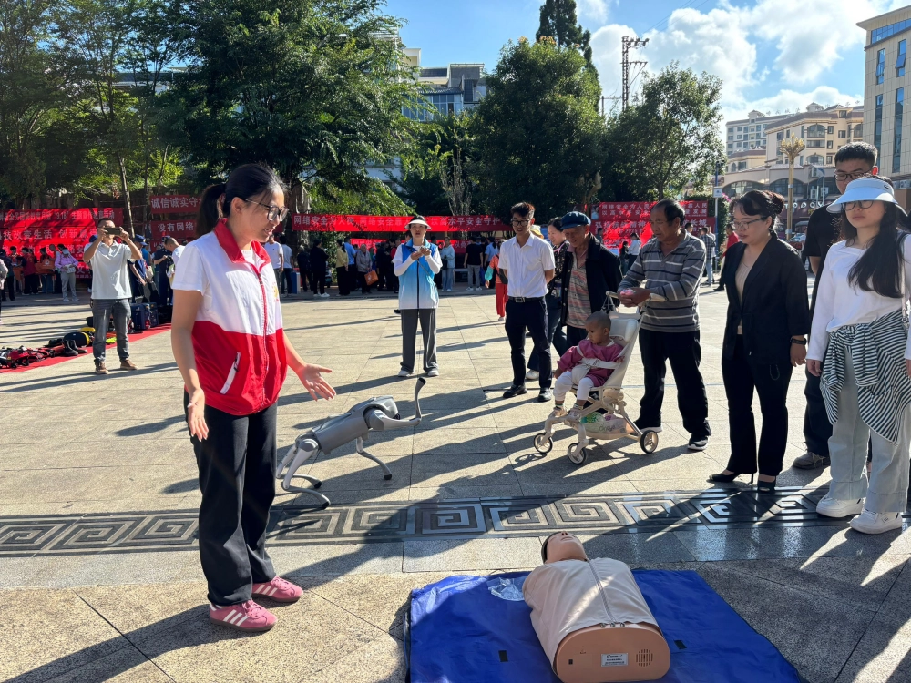 活动现场,40余家参展单位结合自身职能,设立了形式多样的科普宣传点。县科协通过3D展板、机器狗互动表演等方式,生动展示人工智能等前沿科技,吸引众多市民驻足体验;县武装部、县文联通过国防知识展板、纪念中国人民抗日战争暨世界反法西斯战争胜利80周年主题展,开展党史国史教育,增强群众的国防观念和家国情怀;县应急局现场演示便携式卫星基站、雷达生命探测仪、液压破拆工具组、无人机等先进设备,系统展示自然灾害防御体系,显著提升了公众的安全意识和应急能力;县红十字会开展心肺复苏(CPR)实操教学,帮助群众掌握基本急救技能;县卫健局提供免费血压测量、慢性病防治咨询和科学用药指导,贴近民生需求切实为民服务。全场活动通过多元化的互动体验和实用知识普及,将科学知识、科技应用、应急技能和健康理念转化为群众喜闻乐见的科普实践。