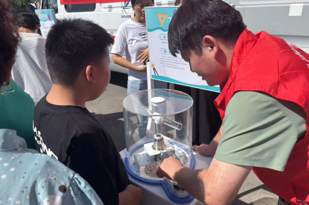 “飞舞小球”展项以伯努利原理为核心,将复杂的流体力学知识转化为可见、可操作的趣味实验。随着小球随气流腾空而起,观众的惊叹声此起彼伏。科学在此刻不再只是书本中的公式,而是触手可及的智慧。“横波和纵波”的演示则将抽象的物理波动直观呈现。群众通过操作装置,切身体会到声波、地震波等自然现象的传播特征,增强了他们对防震减灾和科学防护的认知。