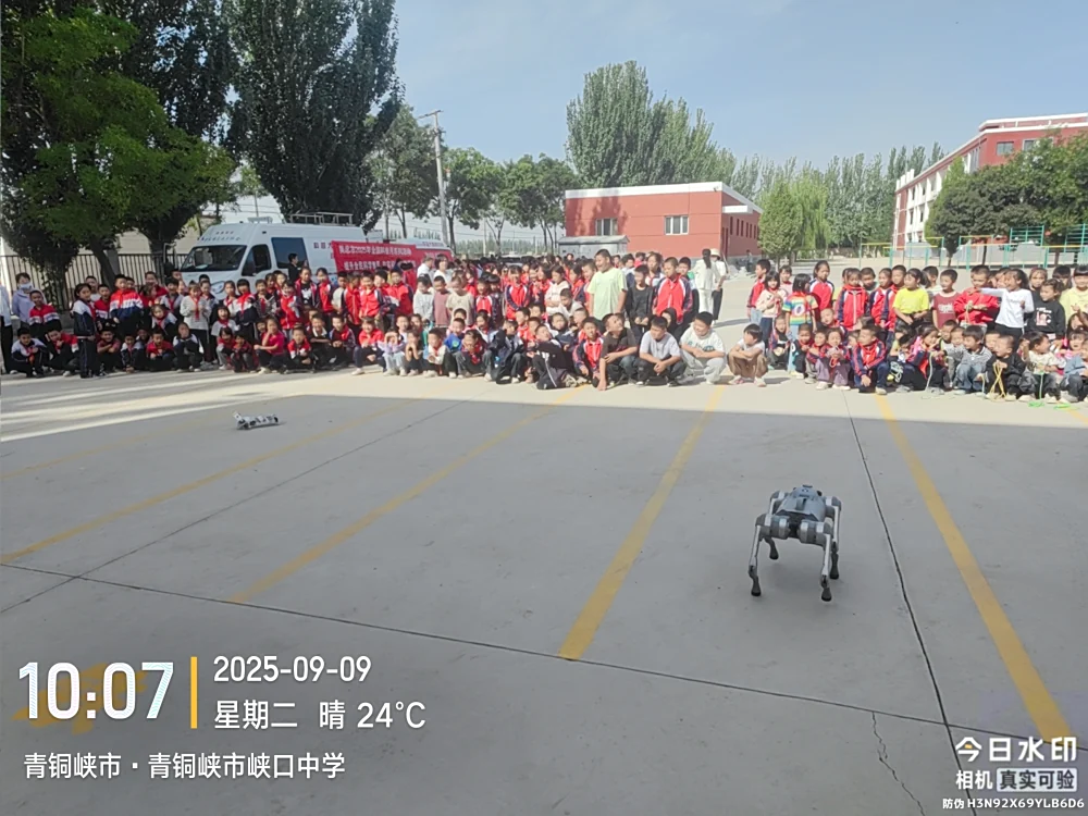 活动现场,科普大篷车带来了科普益智玩具、机器狗、机器人、无人机等各类科普展品。智能机器狗灵活完成跳跃、翻滚、转圈及与人互动等多种动作,其精准与智能反应引起同学们浓厚兴趣,大家纷纷围拢仔细观察、踊跃提问,真切体验到人工智能的先进与魅力。除展品体验外,活动还设置了科普讲座环节。科普志愿者表演了精彩的干冰科学实验,科普了屠呦呦、袁隆平等科学家坚守初心、砥砺奋斗的伟大精神,激励同学们怀揣科学梦想、立志科技创新。科普教师以通俗易懂、趣味生动的语言,深入浅出地讲解前沿科学知识及科学发展历程,有效拓宽了学生的科学视野,让青少年在亲近科技的过程中提升素养、播种梦想。此次活动营造了浓厚的科普氛围,让青少年近距离感受科学的魅力,增强爱科学、学科学、用科学的意识。