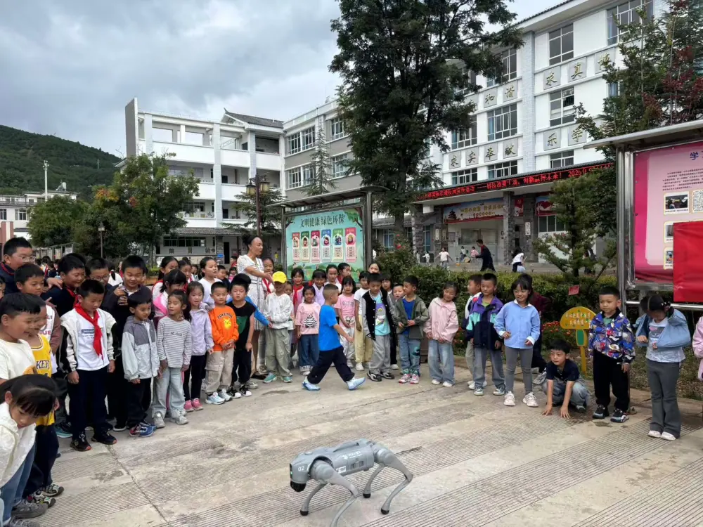 在科技体验区,同学们兴致勃勃地参与七巧板拼图等桌面益智活动,在动手动脑中感受科学的魅力。更有仿生机器狗现场展示,其灵活的动作和智能的表现让同学们惊叹不已,纷纷围在周围,好奇地观察、提问,在与前沿科技的近距离接触中,埋下了探索科学的种子。
