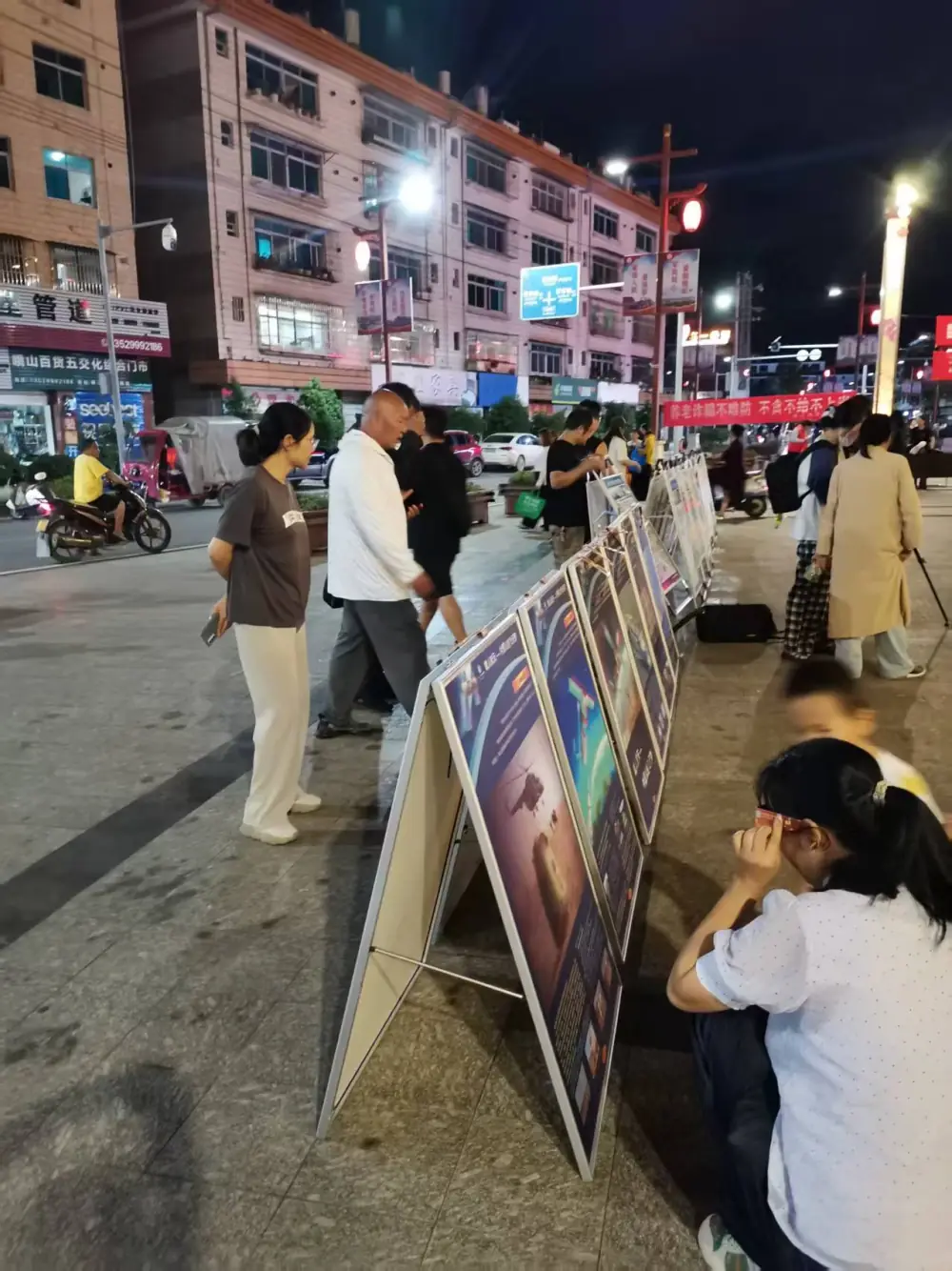 傍晚,广大群众纷纷来到活动现场,领取各单位发放的宣传材料,咨询相关科普知识,驻足观看航天3D展板和健康知识展板。