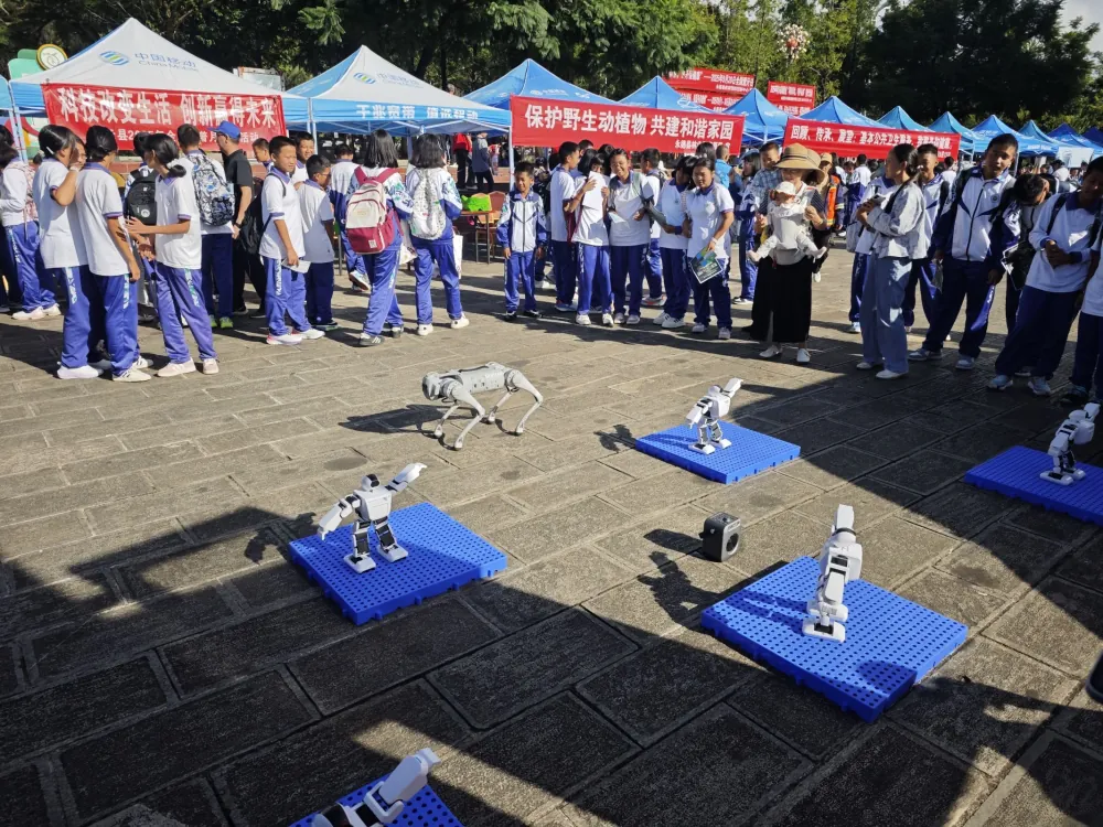永德县文化广场成为科普展示的核心阵地。市、县科协精心组织的科普大篷车一经亮相,就吸引了众多群众驻足围观。大篷车旁,各类科普展板、互动体验设备整齐摆放,工作人员耐心地为大家讲解科学原理和生活中的科技应用,群众纷纷上前体验。随着音乐舞动的机器人,灵活灵动的机器狗时而跳跃、时而翻滚,引得孩子们阵阵欢呼。活动期间,卫生健康、防灾减灾、应急救援、林草资源、食品安全、禁毒防艾等知识宣传同步开展,现场一派充斥着科技味道的热闹景象。