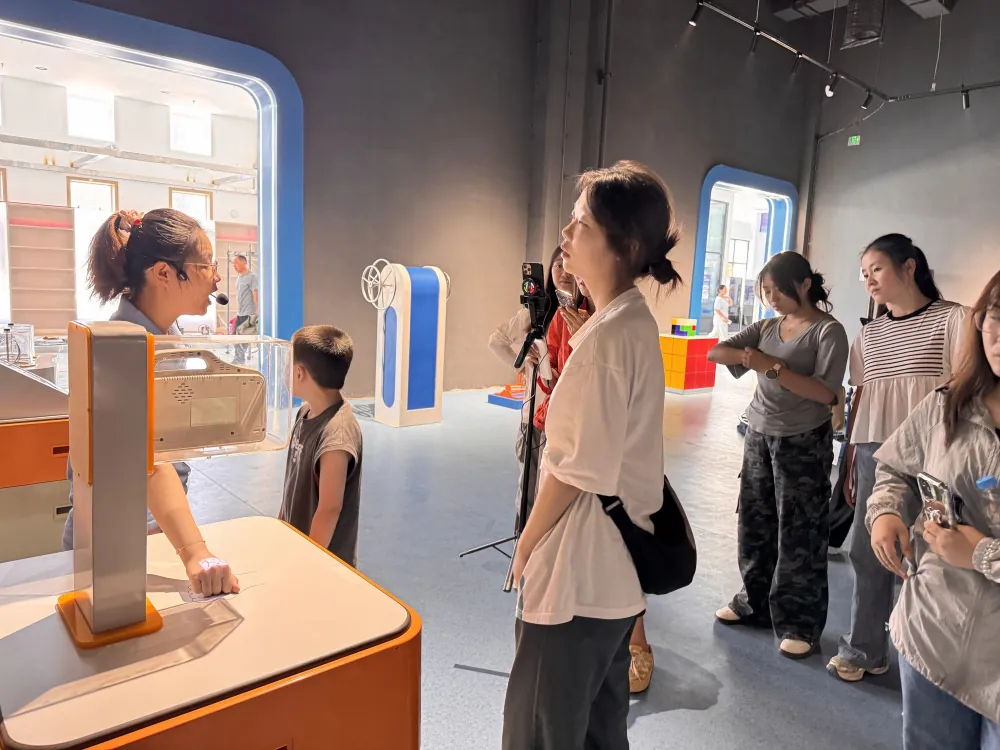 步入馆内,红外血管成像展品率先吸引了大家的目光。借助红外技术,人体血管清晰可见,同学们凑近观察、动手操作,在惊叹科技神奇的同时,对人体结构有了更深入的认识;辉光盘前,五彩辉光随触摸变幻,大家在聆听电场放电原理讲解的过程中,通过亲手体验,直观理解了电学知识,现场充满惊叹与讨论声。