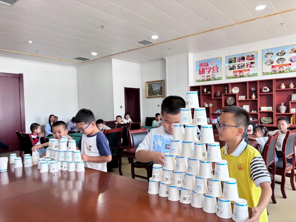 科普互动环节中,县科协将科普课堂“搬进”石馆,依托县科技馆资源,同步开展科学家精神小讲堂与趣味科学小实验。以“杂交水稻之父”袁隆平的故事为核心,讲述他一生扎根稻田、攻克粮食难题的奋斗历程,在聆听过程中,激发民族自豪感与爱国热情。随后的“空气大炮”小实验,更是点燃全场热情。孩子们分组操作简易装置,看着“炮口”喷出的气流击倒远处的纸杯,纷纷动手尝试、反复调整,在观察与实践中探索“空气具有力量”的科学原理,不断激发孩子们爱科学、学科学的动力,现场欢声笑语不断。