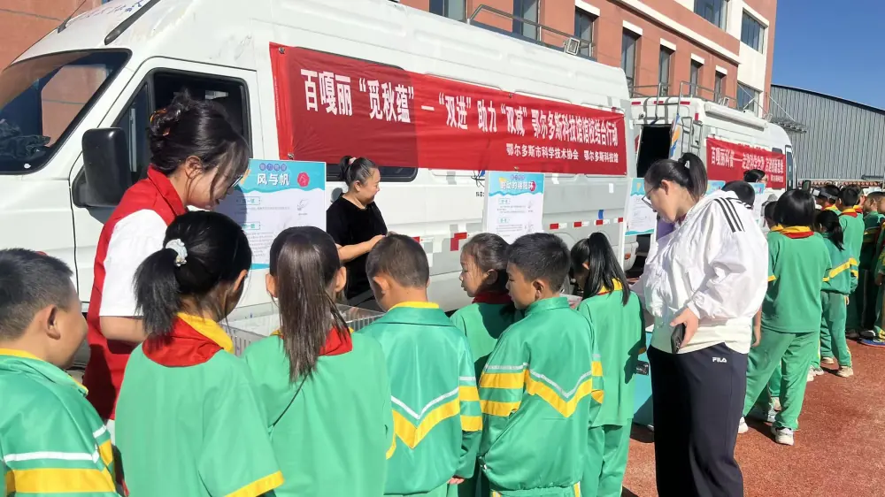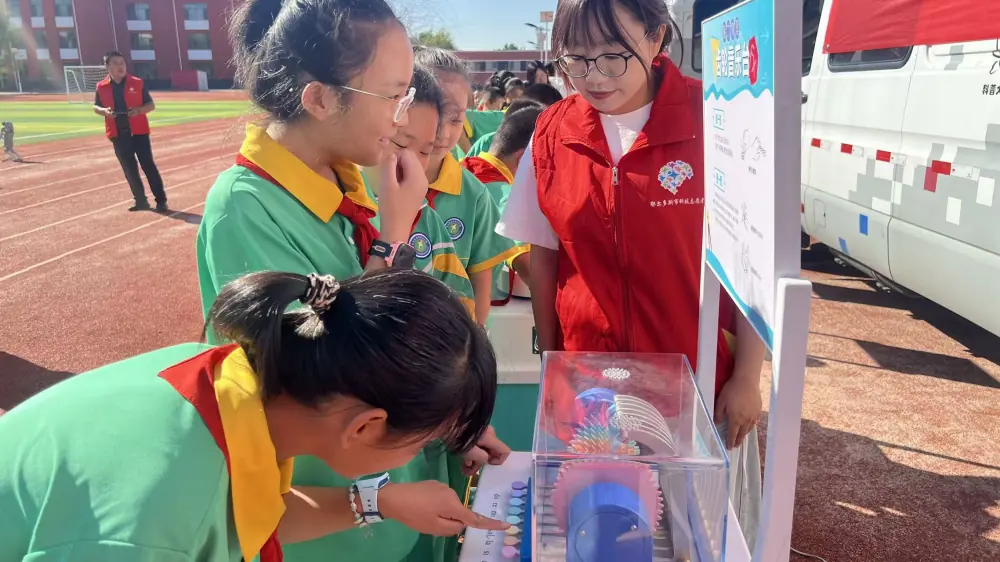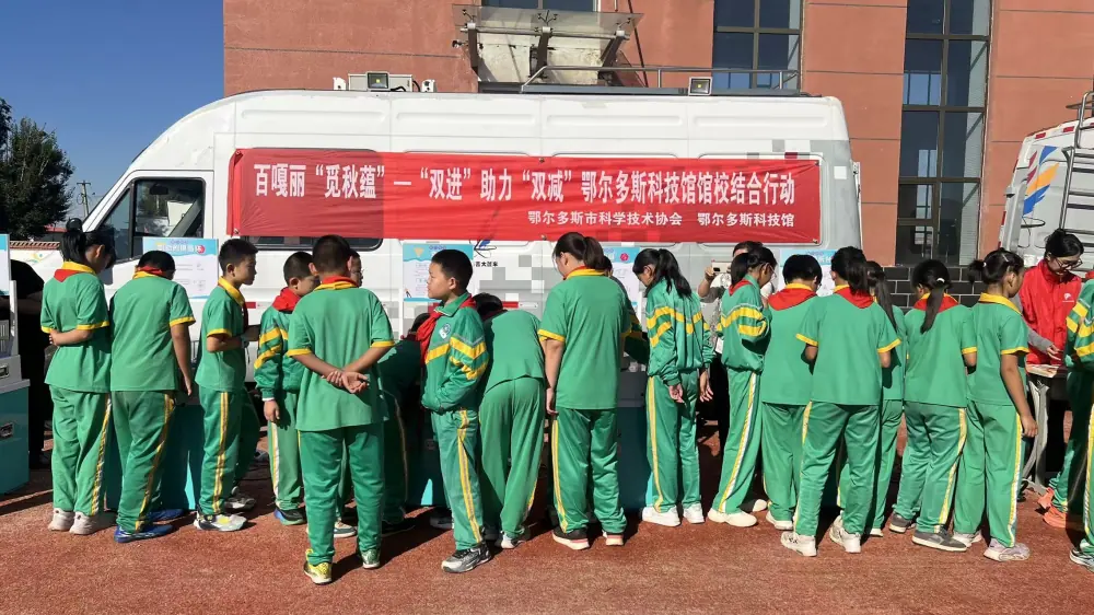 内蒙古鄂尔多斯科技馆“双进”助力“双减”科普大篷车走进达拉特旗展旦召中心小学
